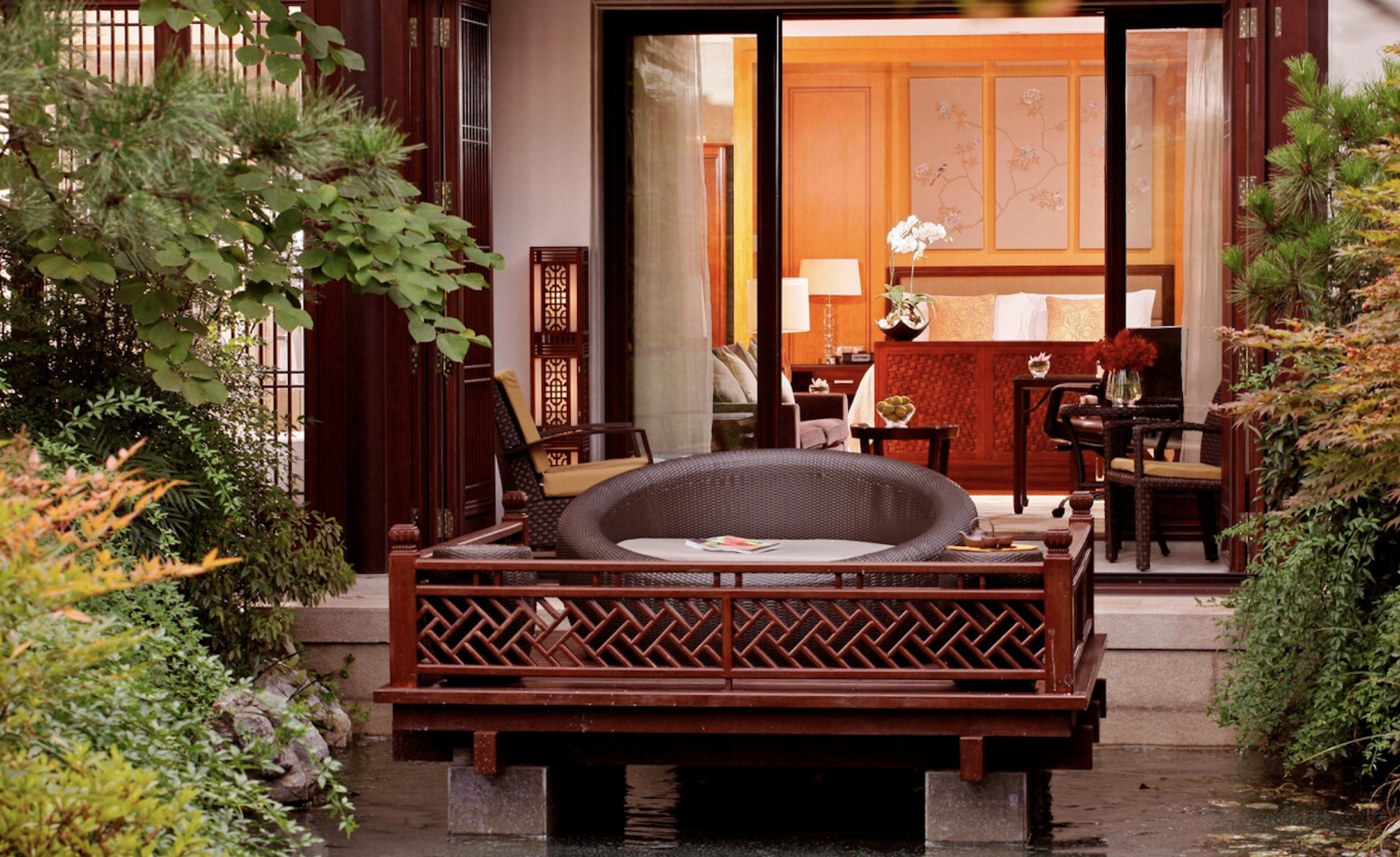 依湖而建的園林式飯店,將江南美學與現代舒適結合,早晨能看見湖面薄霧。