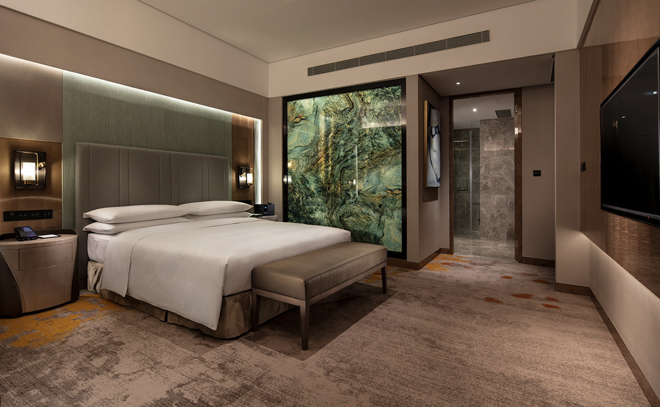 台州希爾頓飯店坐落於台州市中心,地理位置優越,交通便利。這裡是中央商務區核心地段,距市政府、市民廣場和購物中心僅數分鐘路程之遙。飯店設有336間精緻時尚的客房,透過全景落地窗可盡享迷人繁華的城市美景。客房全部配備齊全的設施,讓您沈浸於舒適放鬆的環境,保持充沛活力。