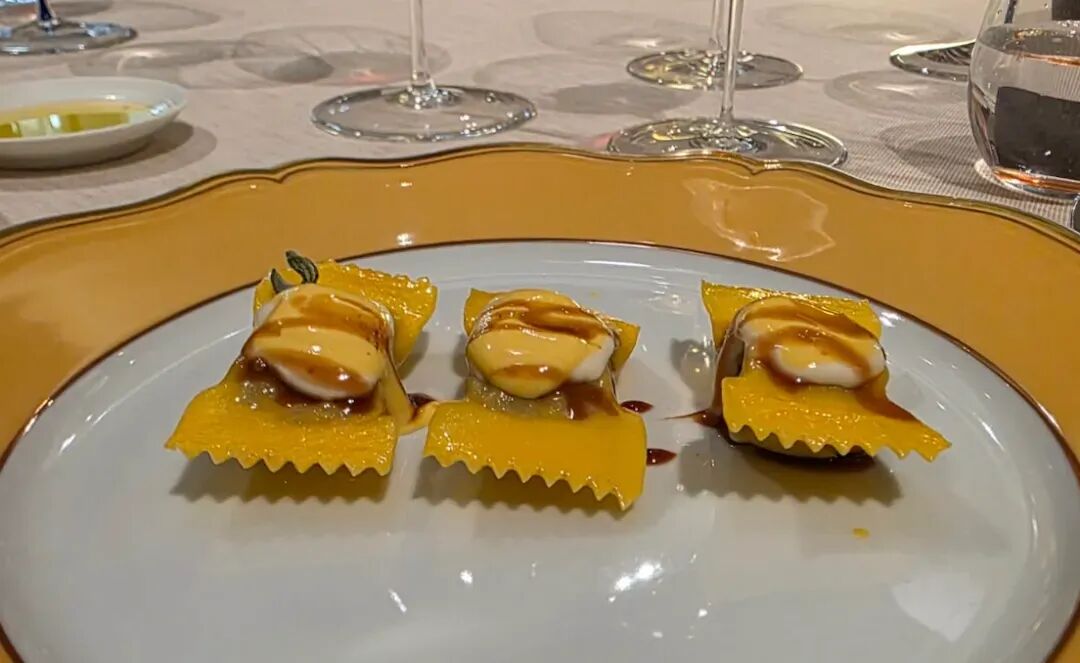 Raviolo dedicato a Milano is a deconstruction of Milan’s classics: ossobuco and saffron risotto. The pasta had a pleasant chew, while the filling centered on the richness of braised veal shank and bone marrow—balanced, elegant...... What a beautifully executed highlight.
