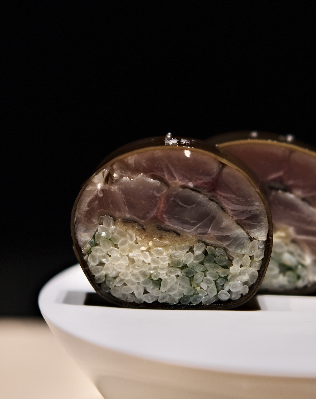 I first discovered Kibun because of Chef Ugo’s signature dish: bōzushi (roll sushi). For me it’s literally a work of art: extremely neat layers of ingredients and when cut into pieces, the mesmerizing cross-section always reminds me of the textbook-perfect Pâté en Croûte by Chef Karen Torosyan, the 2-Michelin-star chef of Bozar in Brussels, who is best known for his puff pastry dishes.