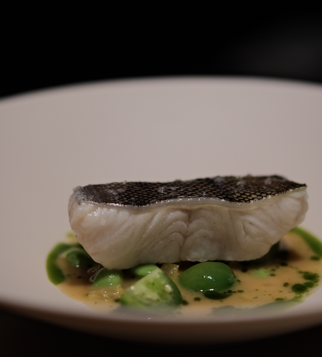 But my favorite dish of the evening was the ainame (fat greenling) from Aomori. Not to mention its incredibly juicy, fatty flesh and gelatinous skin, what truly elevated the dish, however, was the sauce—a delicate fusion of fish stock, tomatillo, and bergamot. The brightness of the citrus softened the acidity of the tomatillo, while the umami-rich broth lent depth and roundness, reminiscent of South American style of cooking. I mopped up every last drop with the accompanying bread.