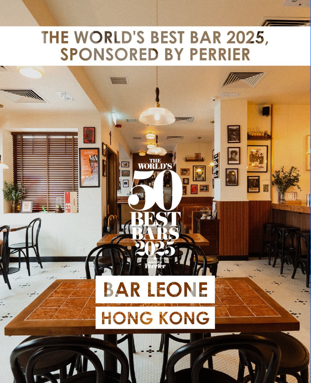 10月8日,「世界50最佳酒吧(The World’s 50 Best Bars)」榜單在中國香港揭曉。香港Bar Leone位居榜單首位,成為亞洲史上首家奪得「世界最佳酒吧」稱號的酒吧。去年冠軍 — 墨西哥的Handshake Speakeasy位居亞軍,巴塞羅那的Sips則獲得季軍。