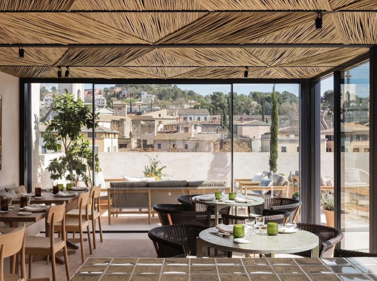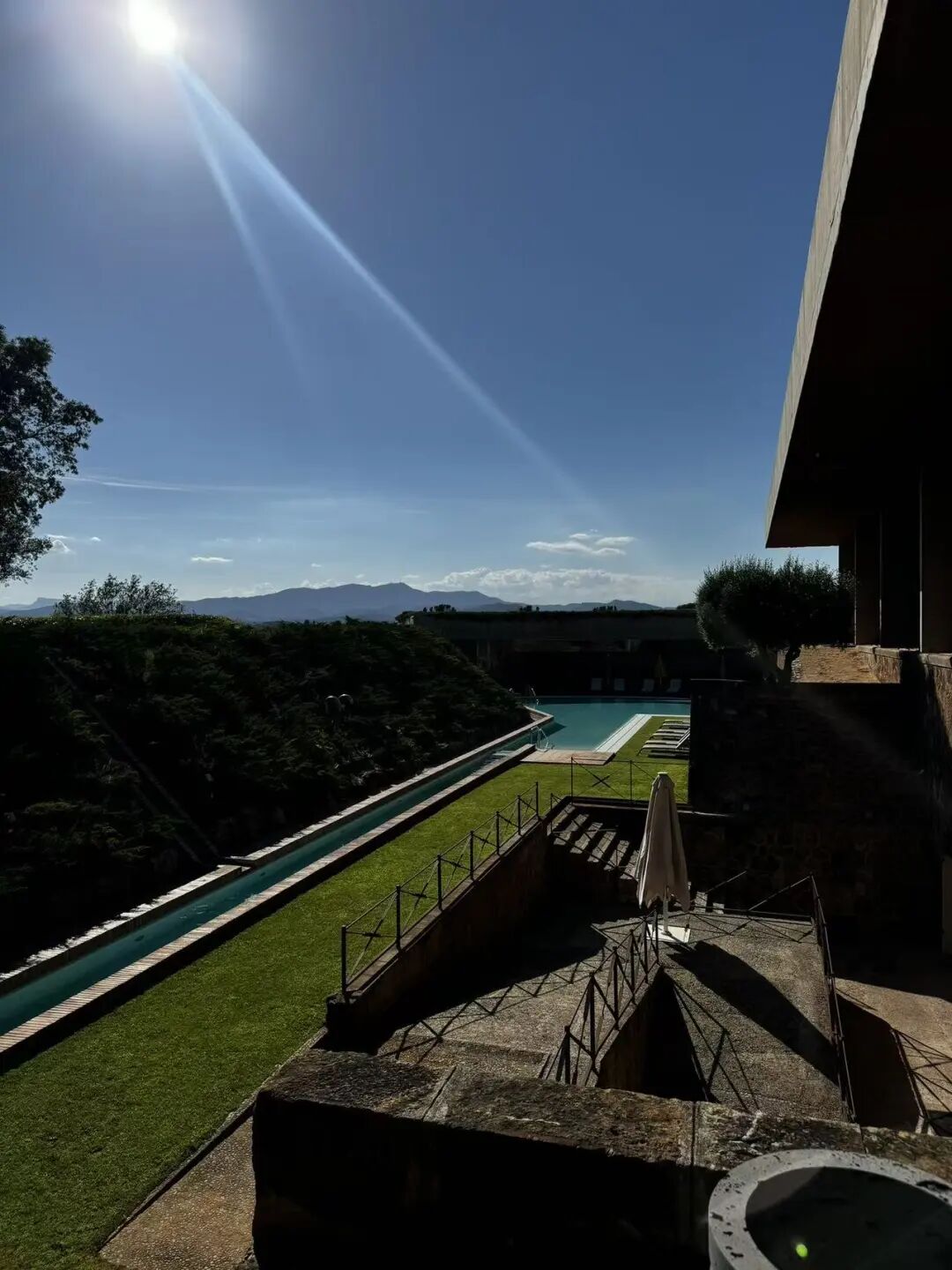 隔日,我們入住Hotel Esperit Roca,自小鎮中心驅車前往至高點,需要大約20分鐘。Castell de Sant Julià de Ramis以前是座軍事要塞,現在成為結合設計、餐飲與文化的復合空間。整個酒店氛圍很特別——泥土天花板、自然光、泳池。在對舊堡壘建築的整修與再設計過程中,特別保留與強化「自然材質」的質感,選擇壓縮土/泥土紋理作為部分天花板表面處理,以與石牆、混凝土、木材互為對比與調和。酒店可以俯瞰整個Girona,節奏慢下,在此又孤獨又自由。