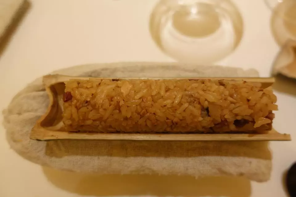 但最後一道「藏香熏筍竹筒飯」的米飯有一點粉感,不知道是米的原因還是沒有蒸透,是稍稍有點疏漏的地方,但是口味層次依舊完成度很高,整體而言仍然表現得相當出色,廊橋演繹的川菜更加細緻內斂。
