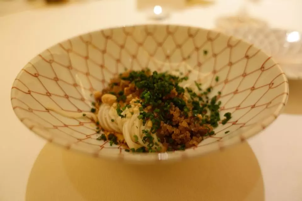 一直以來,我對川菜的體會不是那麼深入,幾個月前在上海的玉芝蘭分店,巧遇蘭桂均師傅,為我們講解了一番關於大眾對於川菜的誤解,沒想到這次的川菜菜單是意外的引人入勝,看得出來廊橋團隊加入了江振誠的法式繁復細膩工序,對層次的講究,變成一道道讓人玩味的精緻料理。